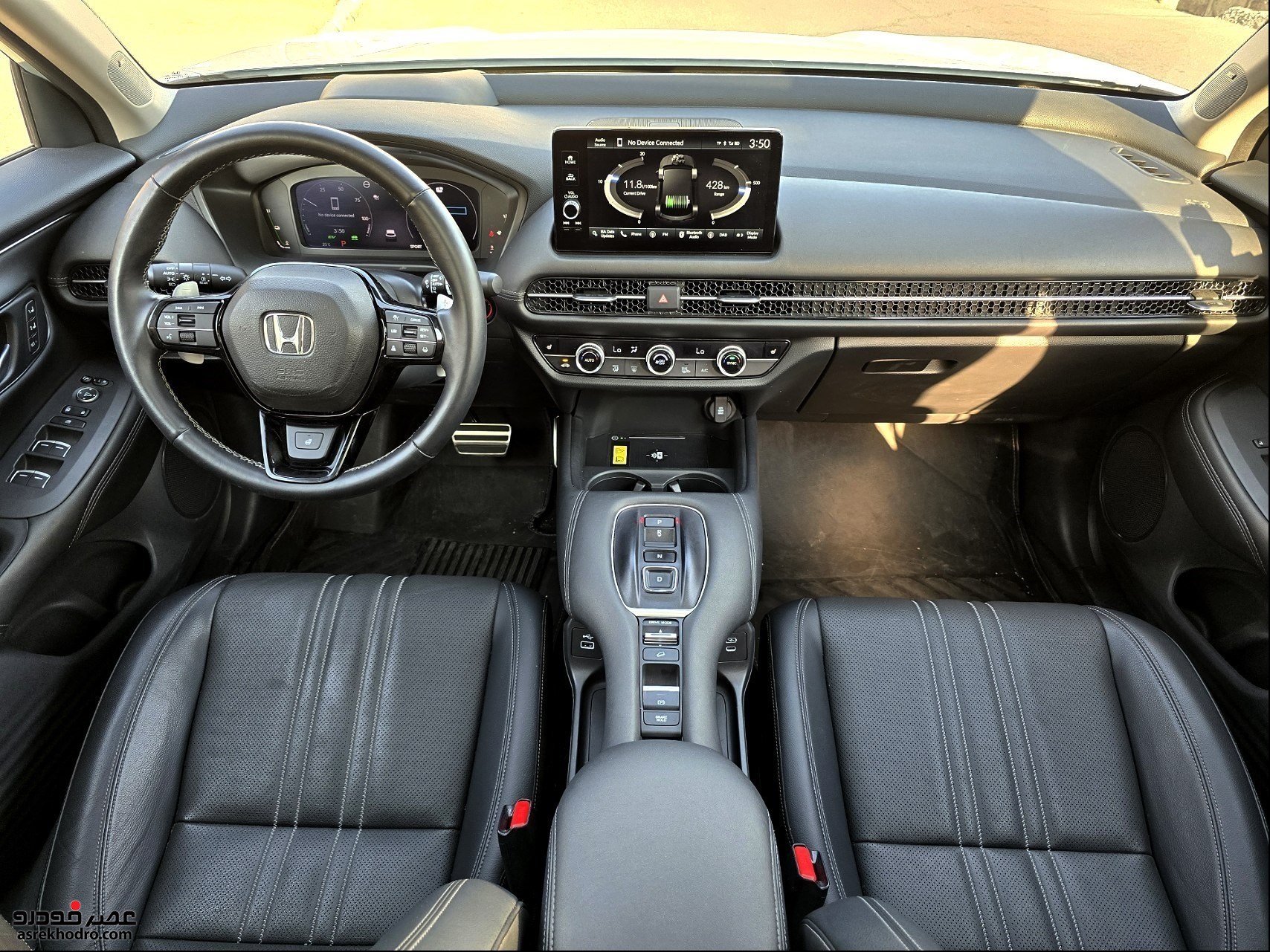 صندلیهای جلو با تنظیم برقی هشت جهته، حافظه برای راننده و گرمکن، راحتی بالایی برای سفرهای طولانی دارند و گرمکن فرمان نیز در زمستان مفید است. فضای سرنشینان عقب جادار است و صندلیهای تاشو صندوق را گسترش میدهند. در صندوق عقب برقی با سنسور حرکتی پا باز و بسته میشود و سقف پانوراما برقی نور طبیعی را به کابین میآورد. نورپردازی محیطی، هدآپ دیسپلی، پشتآمپر دیجیتال ده و دو دهم اینچی و شارژر بیسیم تلفن همراه، کابین را به فضایی هوشمند و دلپذیر تبدیل کردهاند. پدلشیفترهای پشت فرمان برای تنظیم دستی میزان بازیافت انرژی طراحی شدهاند که ویژگی منحصربهفردی در هیبریدهای هوندا است. تهویه اتوماتیک دو کاناله با سیستم پاکسازی هوا، سنسورهای نور و باران و آینه الکتروکرومیک، راحتی را در همه شرایط آب و هوایی تضمین میکنند. استارت دکمهای، ترمز پارک برقی و اتوهلد نیز رانندگی روزمره را آسانتر میسازند. در کل، کابین ZR-V دقیقاً همان ترکیبی از سادگی، کارایی و لوکس بودن است که از یک خودرو ژاپنی انتظار میرود.