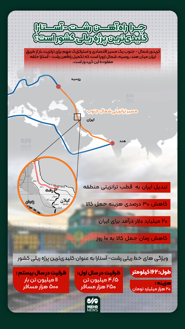 راه آهن رشت-آستارا کلیدیترین پروژه ریلی کشور+اینفوگرافیگ