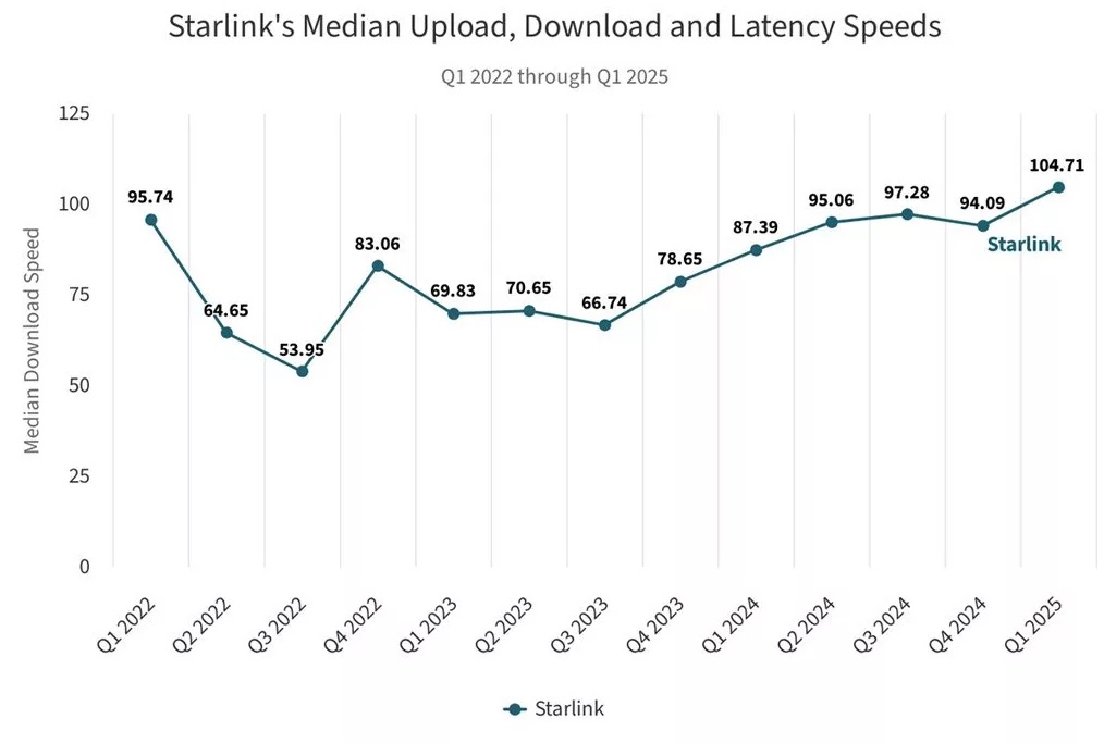 بررسی اخیر نشان میدهد که میانه سرعت دانلود کاربران استارلینک در سهماهه سال جاری میلادی به ۱۰۵ مگابیتبرثانیه رسیده و این رقم برای آپلود هم ۱۵ مگابیت اعلام شده است. همچنین باید توجه داشت که ساکنین نقاط پرتراکم معمولاً با افت سرعت بیشتری در ساعات اوج ترافیک مواجه خواهند شد و ارقام ثبت شده توسط آنها با حد میانه مورد اشاره، تفاوت محسوسی دارد.