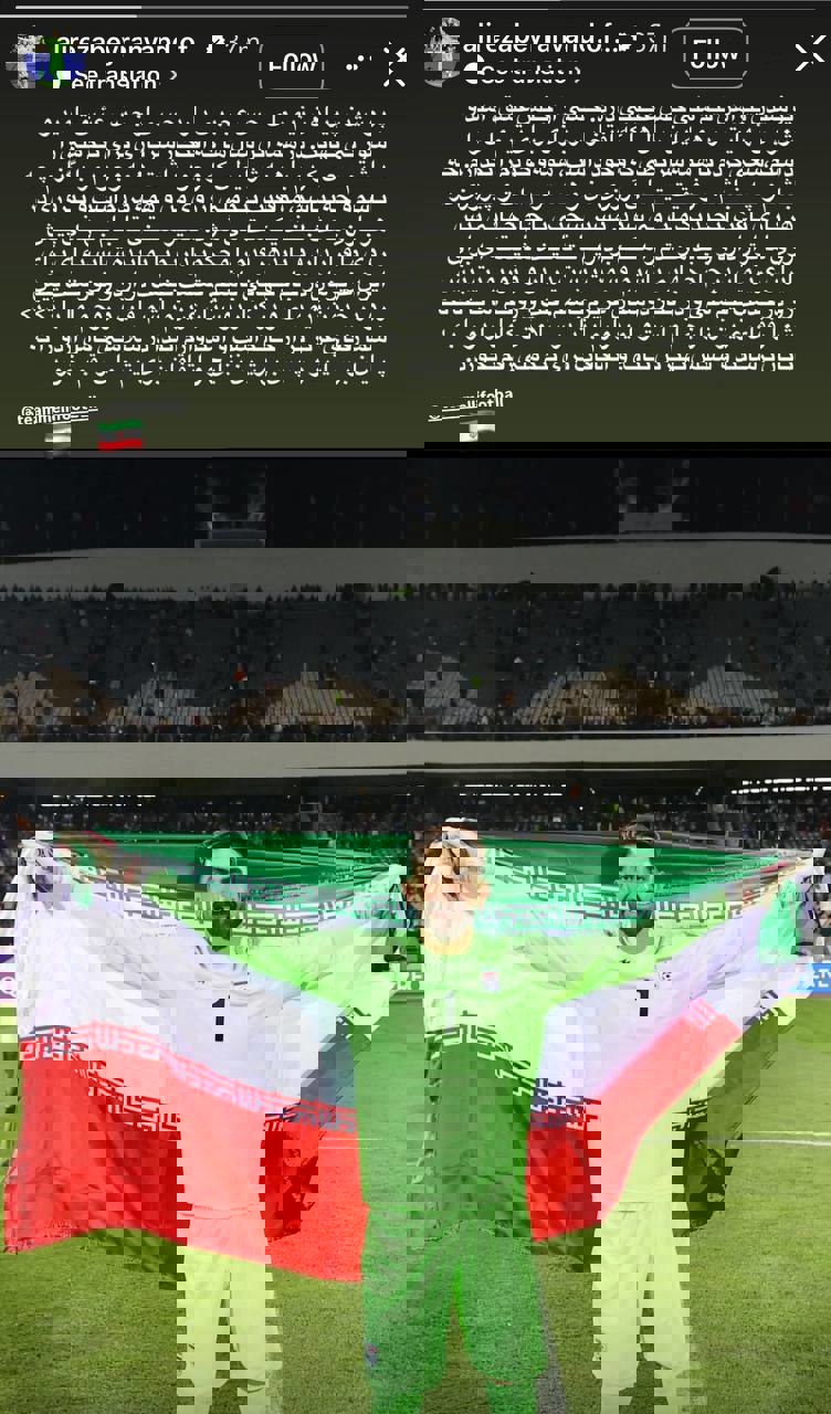 بیرانوند با انتشار تصویری از لحظه صعود به جام جهانی ۲۰۲۶ در پیامی نوشت: