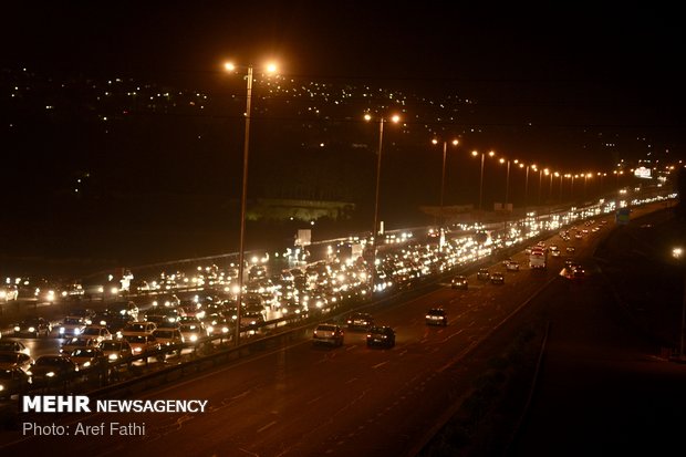 ترافیک سنگین شبانگاهی در محور یکطرفه جاده چالوس