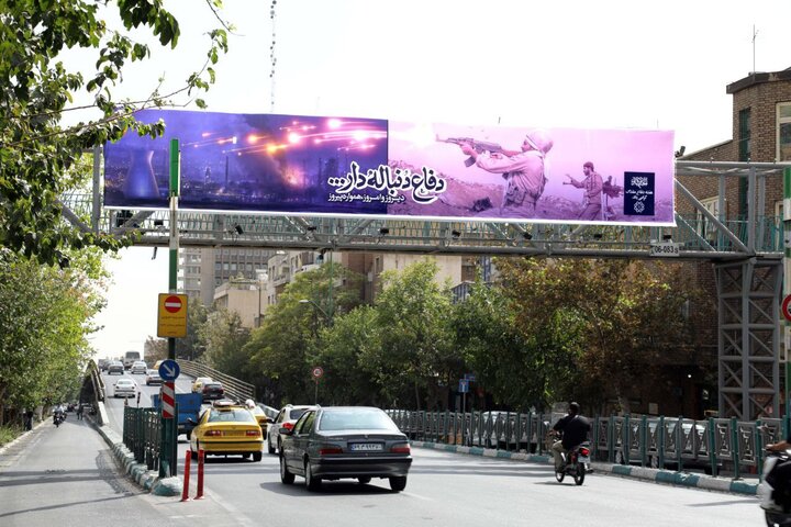 به گزارش خبرگزاری مهر، به نقل از سازمان زیباسازی شهرداری تهران، مجموعهای از تصاویر با شعارهایی چون «دفاع دنبالهدار» و «دفاع مقدس، دیروز و امروز همواره پیروز» به مناسبت آغاز هفته دفاع مقدس، در سطح شهر اکران شد.