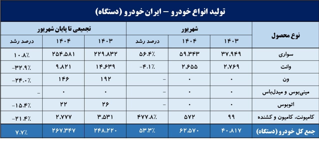 جهش تولید ایرانخودرو در شهریورماه 1404
