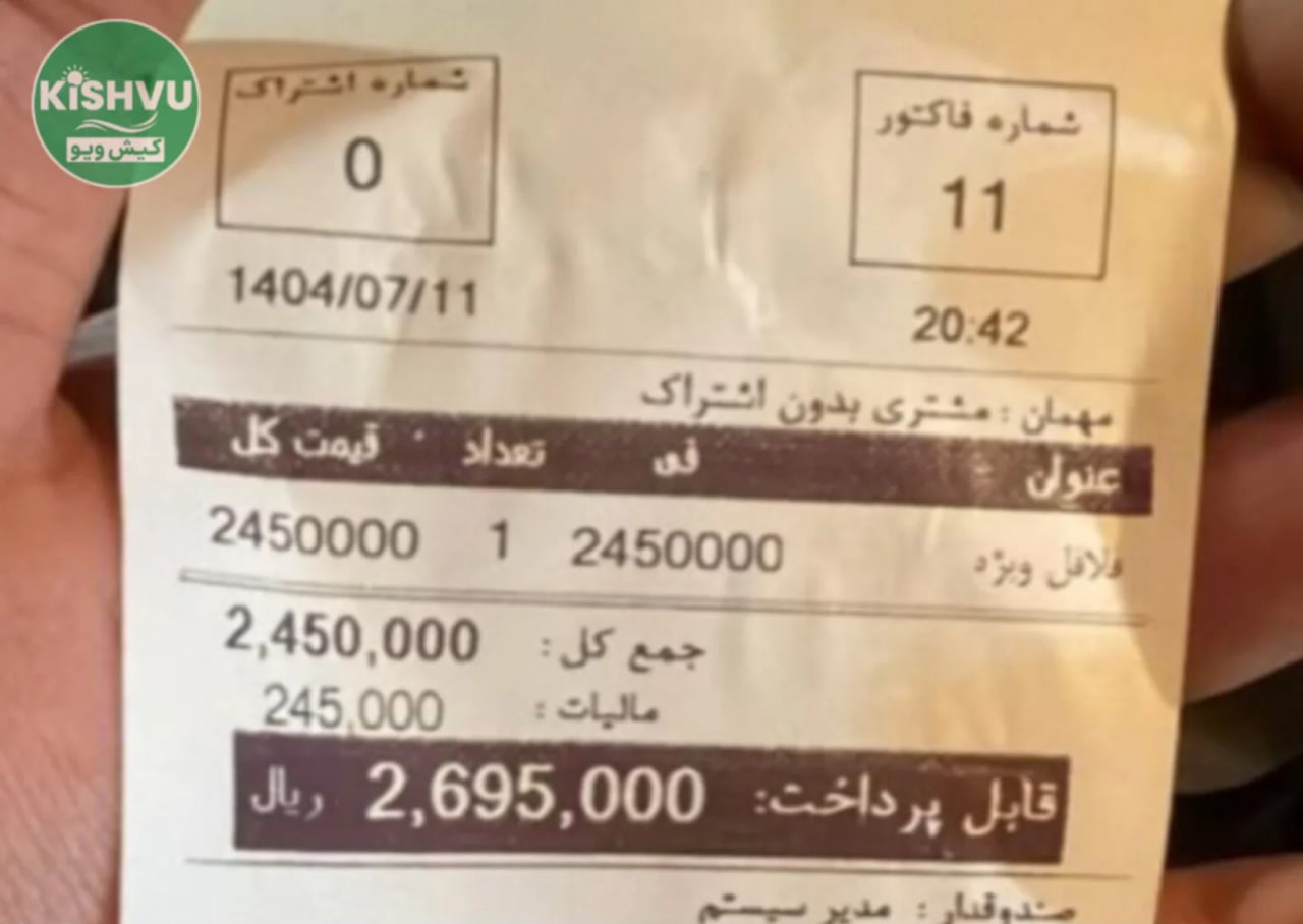 عکس عجیب از فاکتور قیمت یک ساندویچ فلافل در کیش