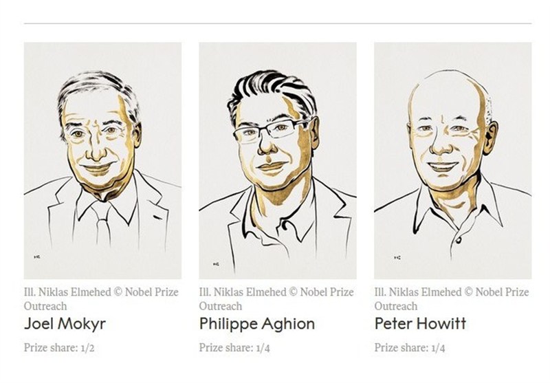 جول موکیر متولد هلند و استاد دانشگاه نورث وسترن آمریکا، فیلیپ آگیون متولد فرانسه و استاد دانشگاه علوم سیاسی و اقتصاد لندن و پیتر هویت متولد کانادا و استاد دانشگاه براون آمریکا برندگان نوبل اقتصاد 2025 معرفی شده اند.