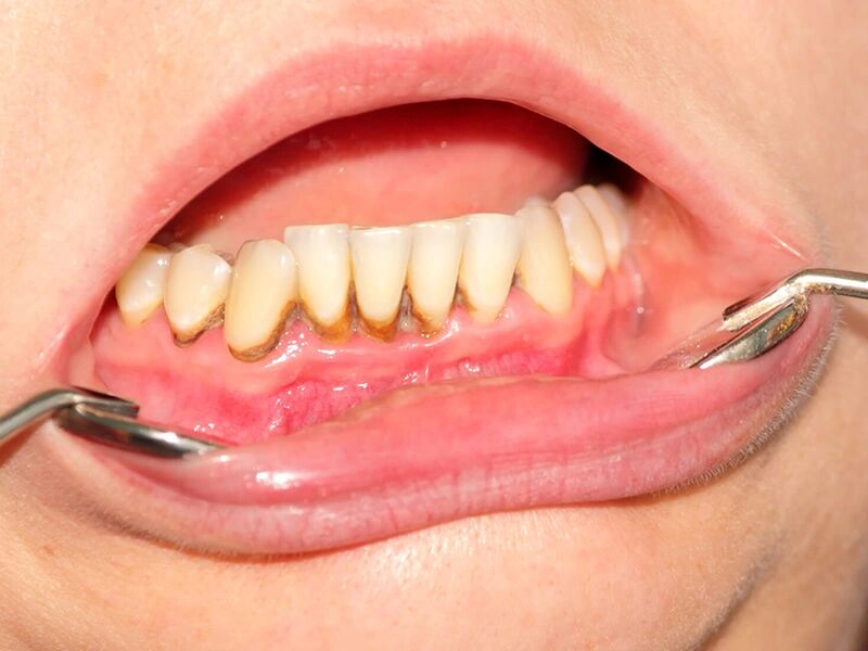 • عفونت لثه: تجمع باکتری‌ها در اطراف خط لثه، خطر التهاب، خونریزی و عفونت را افزایش می‌دهد. با ادامه این روند، عفونت به بافت‌های عمقی‌تر لثه سرایت کرده و موجب تحلیل استخوان فک و بافت‌های نگهدارنده دندان می‌شود.