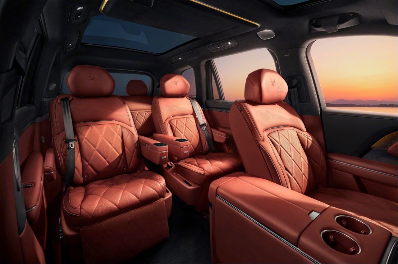 کابین Voyah Taishan دارای 6 صندلی با چیدمان 2+2+2 است. ردیف دوم شامل 2 صندلی کاپیتانی است که هرکدام یک نمایشگر و جا لیوانی در بخش میانی دارند. هر دو صندلی دارای زیرپایی برقی، شارژر وایرلس و اسپیکر در قسمت پشت سری هستند. از دیگر امکانات Taishan به میتوان به یخچال، میز تاشو، سقف پانوراما 2 قسمتی و نمایشگر سقفی اشاره کرد. روی داشبورد خودرو یک نمایشگر شناور و پشت فرمان هم یک کلاستر تمام دیجیتال و البته یک هدآپ دیسپلی یا HUD نصب شده است.