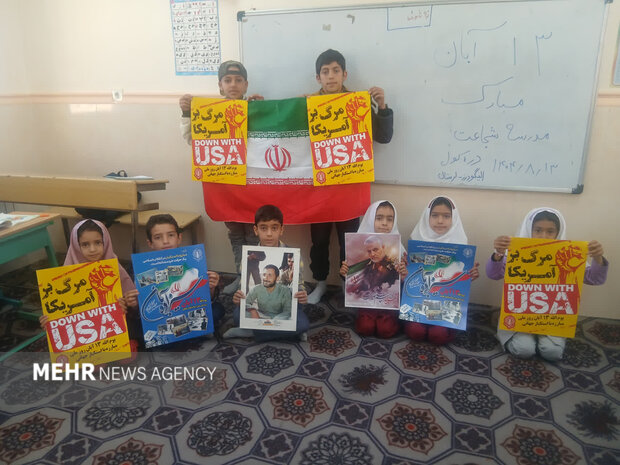 خبرگزاری مهر- گروه استانها: همزمان با سیزدهم آبانماه، روز ملی مبارزه با استکبار جهانی، مراسمی نمادین در مدرسه ابتدایی «شجاعت» روستای درهکول الیگودرز برگزار شد.