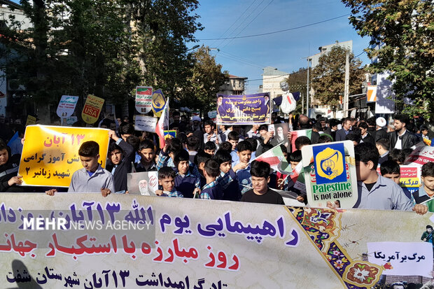 اقتصاد ایران: شفت- مردم شفت با حضور گسترده در راهپیمایی ۱۳ آبان و با مشت های گره کرده انزجار خود را از اسرائیل و استکبار جهانی فریاد زدند.