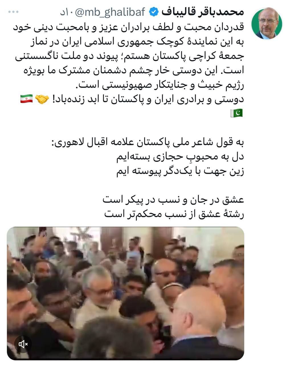 استقبال عجیب نمازگزاران جمعه پاکستان از قالیباف!
