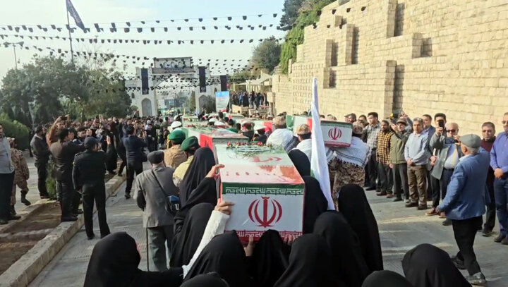 اقتصاد ایران: شیراز- مراسم استقبال از پیکر ۱۶ شهید دفاع مقدس با حضور خانواده معظم شهدا، مردم، فرماندهان نظامی و مسئولین استانی در دروازه قرآن شیراز برگزار شد.