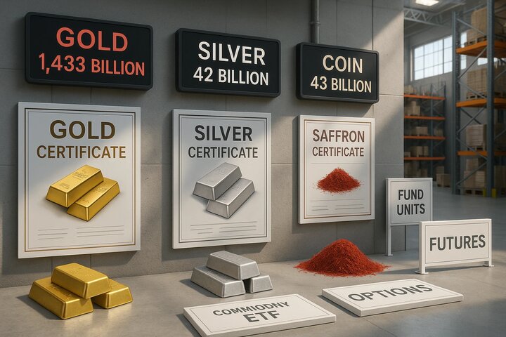 به گزارش خبرگزاری مهر به نقل از بورس کالای ایران در دادوستدهای روز ۲۶ آبان ماه ۱۴۰۴ بازار گواهی سپرده کالایی، ۹۶۲ هزار و ۴۶۳ گواهی شمش طلا به ارزش هزار و ۴۳۳ میلیارد تومان، ۲۱۱ هزار و ۵۶۷ گواهی شمش نقره به ارزش ۴۲ میلیارد تومان، هزار و ۲۱۳ گواهی سکه به ارزش ۱۴۰ میلیارد تومان و ۲۵۱ هزار و ۳۱۱ گواهی زعفران به ارزش ۴۳ میلیارد تومان فروخته شد.