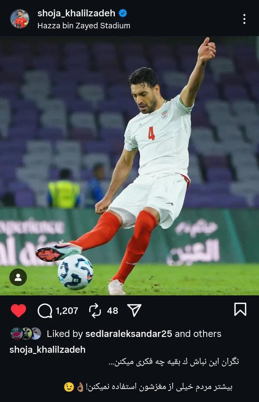 اقتصاد ایران: شجاع خلیلزاده مدافع تیم ملی به جای عذرخواهی از مردم، از آنها به دلیل اینکه به او استرس وارد میکنند، طلبکار است.