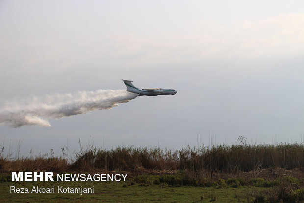 اقتصاد ایران: چالوس - هواپیمای ایلوشین برای عملیات اطفای کامل حریق جنگلهای روستای الیت بخش مرزنآباد شهرستان چالوس به آسمان برگشت.