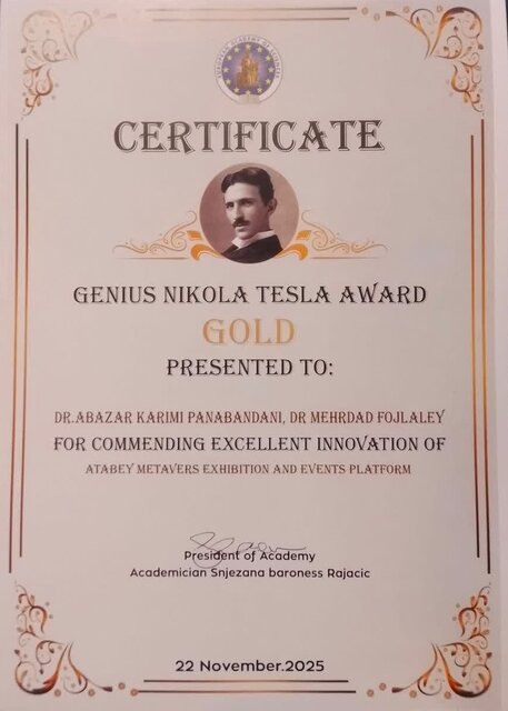 اقتصاد ایران: ایسنا/قزوین اباذر کریمی پنابندانی، پژوهشگر قزوینی و مدیر پروژه متاورسی «آتابی»، به همراه پروفسور مهرداد فوجلعلی، رئیس دانشگاه تکنوفست شعبه ترکیه، موفق به دریافت نشان طلای نیکولا تسلا ۲۰۲۵ شدند؛ جایزهای که آکادمی علوم اروپا آن را به نوآوران تأثیرگذار در توسعه فناوریهای آینده اعطا میکند.