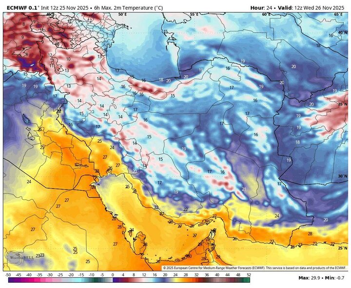 ضیائیان بیان کرد: امروز (چهارشنبه، ۵ آذر) در نوار شمالی و روز پنجشنبه (۶ آذر) در شمالشرق کشور روند دما بهصورت نسبی کاهشی خواهد بود.