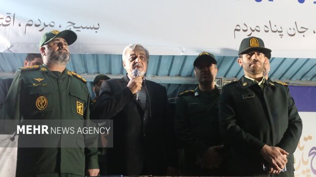 در ادامه این مراسم، سرهنگ عیسی روشنقلب با گرامیداشت هفته بسیج، حضور مقتدرانه بسیجیان در صحنه را حماسهای چشمگیر دانست و گفت: همانگونه که رهبر معظم انقلاب فرمودند «بسیج مدرسه عشق است».