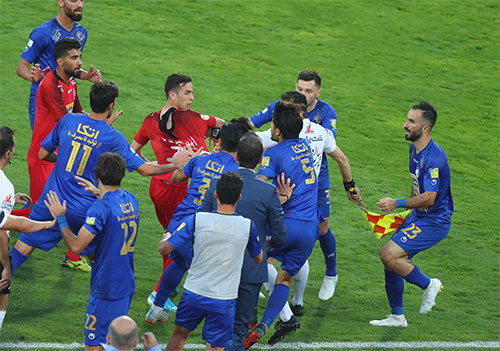 همین حالا که این گزارش نوشته میشود این تنشها ادامه دارد. تنشی که اکنون شاهد آن هستیم نمایشی از یک الگوی تکراری در فوتبال ایران است که پیش از هر دربی یا بازی مهم به اوج میرسد. در این مورد خاص به محض سوت پایان بازی پرسپولیس و بعد از اظهارات کارشناسان داوری توپخانه طرفین فعال شد! روز بعد اظهارنظر کنایهآمیز ریکاردو ساپینتو، سرمربی استقلال در نشست خبری پیش از دیدار با فولاد مبنی بر اینکه «داور یک برد به پرسپولیس هدیه داد» آتش زیر خاکستر را دوباره شعلهور کرد. این اظهارات بلافاصله با واکنش شدید هواداران و رسانههای منتسب به پرسپولیس مواجه شد که در مقابل یادآوری کردند که در جام حذفی تیم استقلال از داوری به نفع خود سود برده و سر تیم پادیاب را بریدند! این تبادل آتش کلامی زمانی به اوج خود رسید که سخنگوی پرسپولیس و یکی از اعضای هیاتمدیره استقلال به دلیل اظهارات تند و مستقیم علیه باشگاه رقیب با محرومیتهایی ازسوی کمیته انضباطی مواجه شدند.