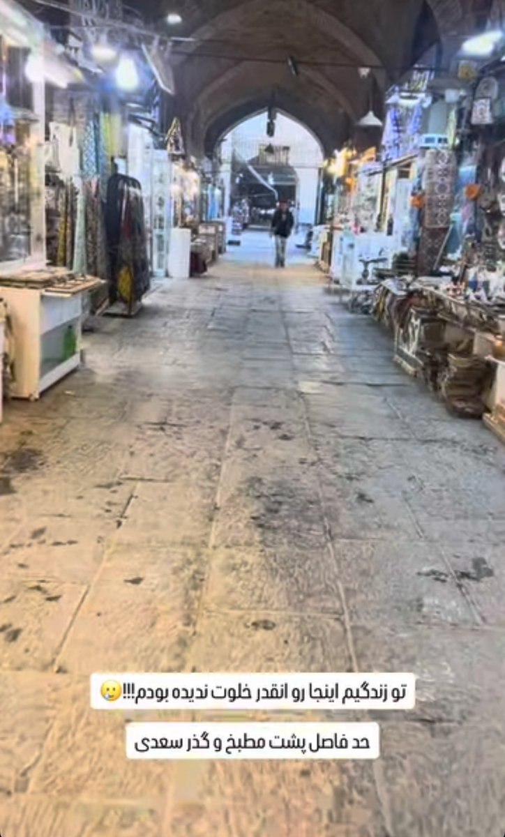 اقتصاد ایران: تصویری منتشرشده از یکی از گذرهای بازار اصفهان، بهویژه محدوده پشت مطبخ و گذر سعدی، نشان میدهد که این بخش از بازار برخلاف معمول، با خلوتی محسوس مواجه شده است. کاربران فضای مجازی که این تصویر را بازنشر کردهاند، از «بیرمقی» و «رونق پایین» فروشگاههای صنایعدستی خبر میدهند.