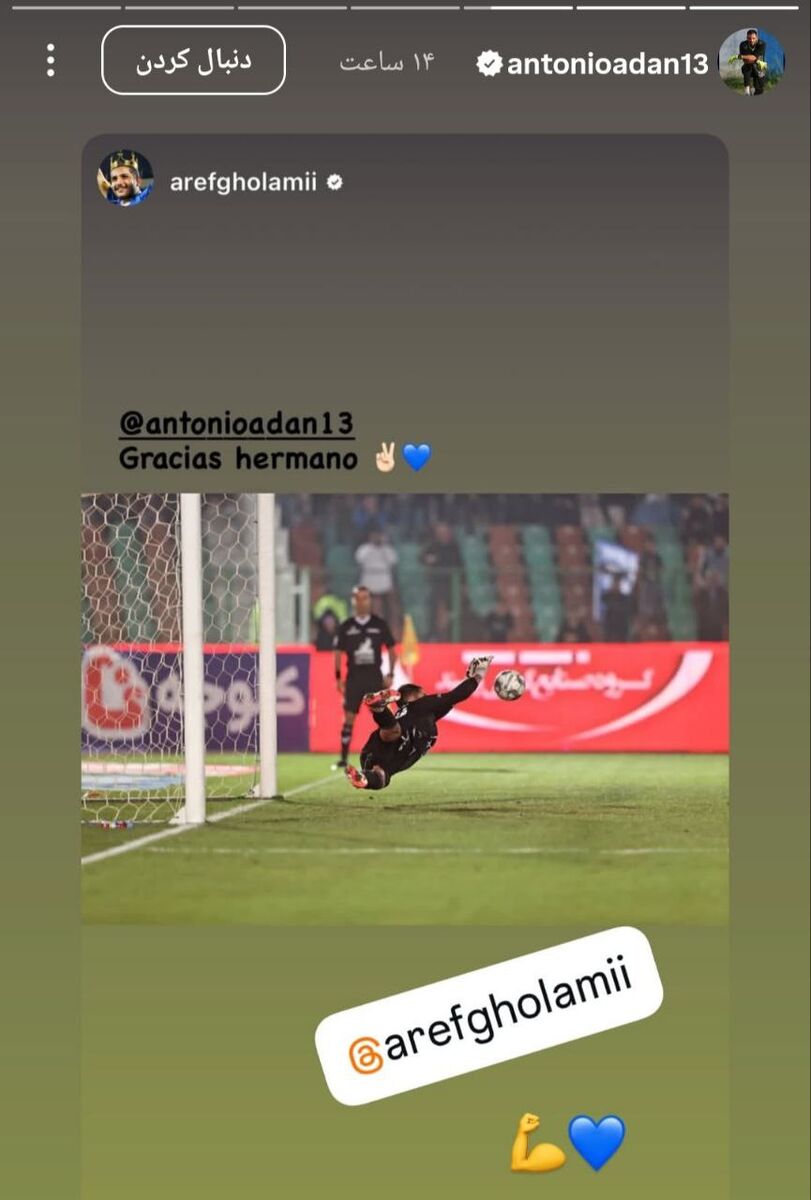 نکته جالب توجه اینکه آدان هم این تشکر عارف را در صفحه خود بازنشر داد تا همه چیز شیرین شده و حال و هوایی شبیه فیلمهای هندی به خود بگیرد! البته فراموش نکنیم که آنتونیو آدان با پنالتی خوبی که گرفت، حالا قطعاً شانس اول حضور در دربی تلقی میشود.