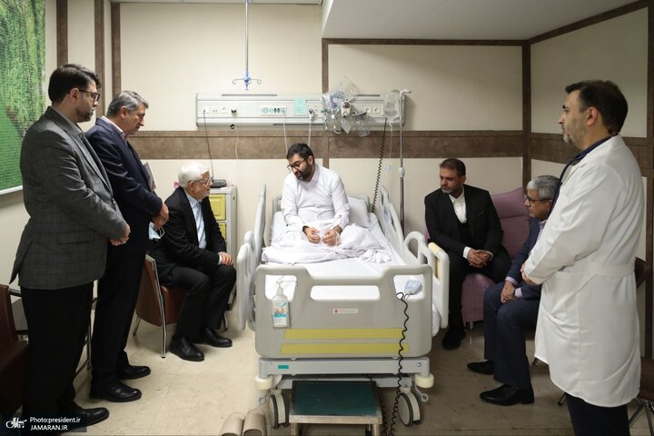 حجت الاسلام والمسلمین محسن قمی معاون ارتباطات بین الملل دفتر مقام معظم رهبری، علی مدنی زاده وزیر اقتصاد، سیدکامل تقوی نژاد دبیر هیات دولت و الیاس حضرتی رییس شورای اطلاع رسانی دولت نیز در این عیادت حضور داشتند.