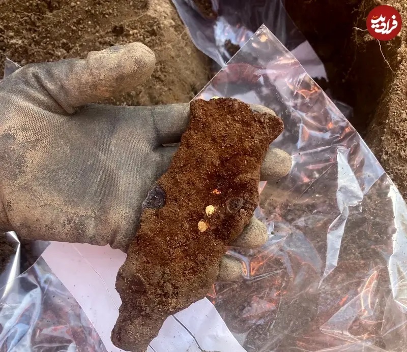 یکی از قطعات طلاکوب در لحظۀ کشف