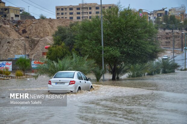 اقتصاد ایران: بندرعباس- وضعیت آبگرفتگی در بندرعباس به حدی است که تردد خودروها به سختی انجام میشود.