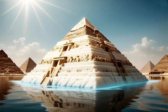 اقتصاد ایران: این هرم متفاوت مصر باستان به گونهای بود که گویی روی آب شناور است. پژوهشگران میگویند پیرامون آن خندقی عظیم حفر میشد که با آب رود نیل پر میگردید و جلوهای ایجاد میکرد که سازهای تنها در میان پهنهای از آب به چشم میآمد.