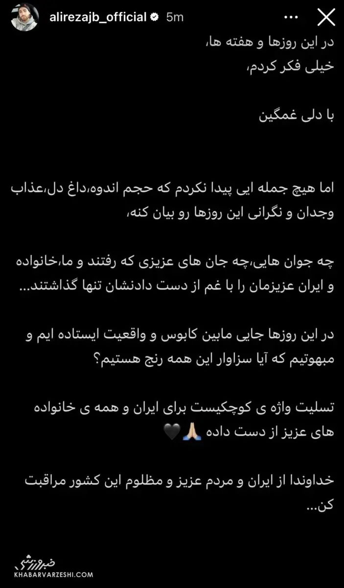 خبرورزشی: علیرضا جهانبخش، کاپیتان تیم ملی فوتبال در پی مشکلات و اعتراضات مردمی در صفحه اینستاگرام خود استوری منتشر کرد و نوشت:
