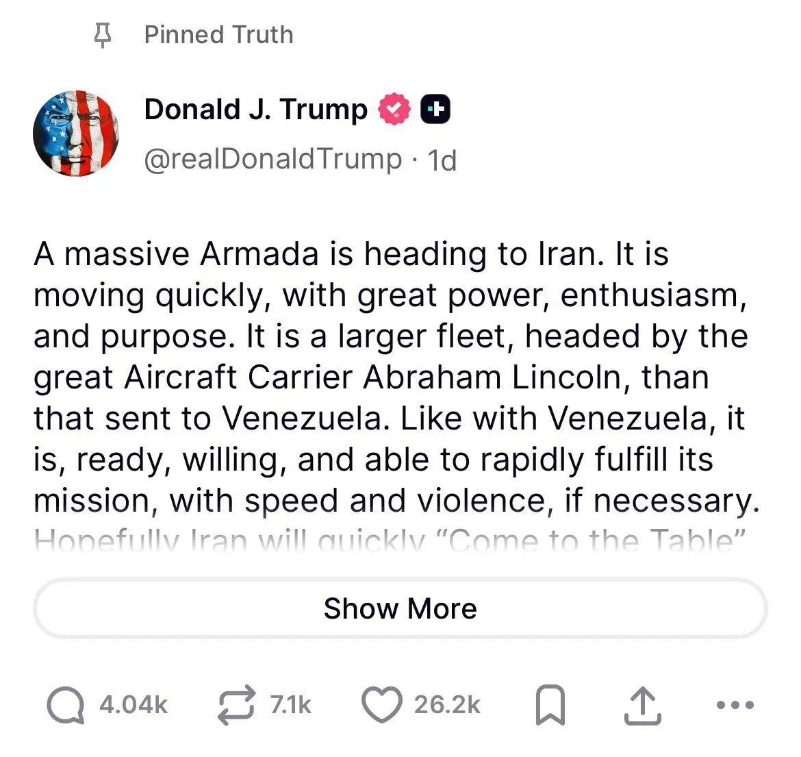 انتخاب: دونالد ترامپ، رئیسجمهور آمریکا توئیت اخیر خود در مورد ایران را در شبکه اجتماعی خود پین کرد. این توئیت درباره ادعای وی مبنی بر حرکت یک ناوگان به سوی ایران و ابزار امیدواری برای توافق واشنگتن و تهران است.