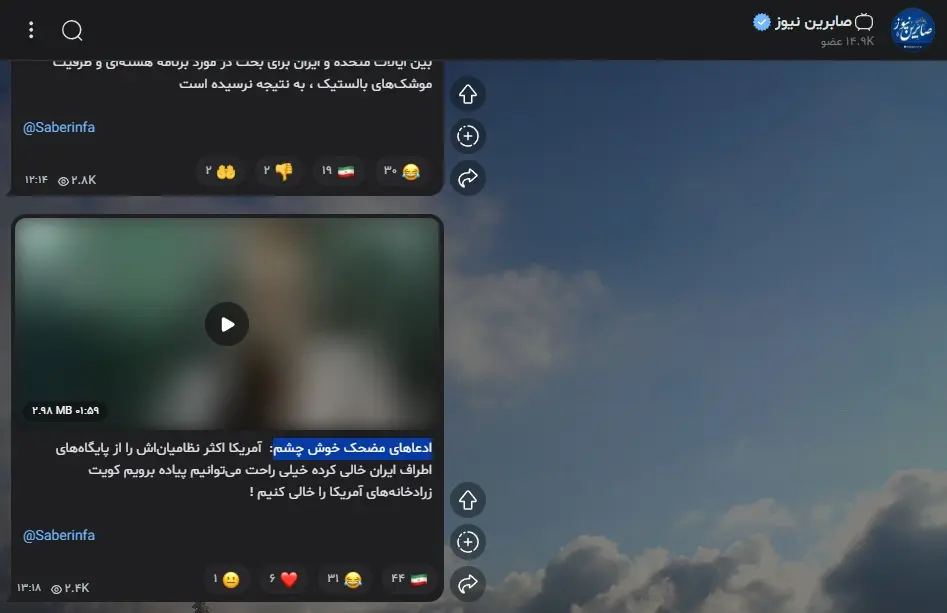 در همین زمینه، رسانه صابرین نیوز نزدیک به سپاه پاسداران ادعاهای کارشناس شبکه افق را مضحک خواند.