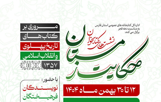 نشست کتابخوان «حکایت زمستان» با هدف تبیین تاریخ معاصر ایران، بازخوانی تحولات دوران پهلوی و بررسی زمینهها و پیامدهای پیروزی انقلاب اسلامی ۱۳۵۷، از ۱۲ تا ۳۰ بهمنماه ۱۴۰۴ به همت کتابخانه های عمومی فارس در مساجد شاخص سراسر استان فارس برگزار خواهد شد.