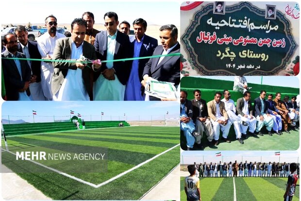 افتتاح زمین چمن مصنوعی مینی فوتبال روستای «چگرد» شهرستان مهرستان