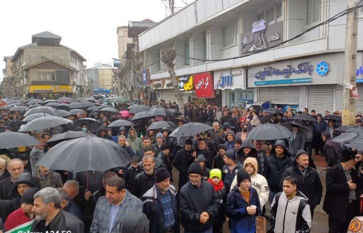 اقتصاد ایران: صومعه سرا- در این فیلم راهپیمایی ۲۲ بهمن در صومعهسرا با حضور گسترده مردم در هوای بارانی را مشاهده می کنید.