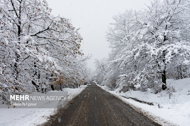 بارش برف در ۵ محور کوهستانی گیلان؛ پونل - خلخال مسدود شد