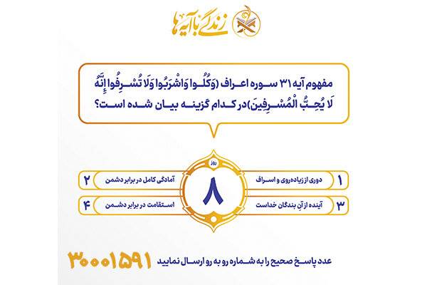 سوال روز هشتم مسابقه پیامکی زندگی با آیه ها در استان کرمانشاه