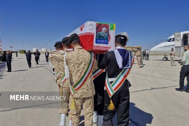 پیکر خلبان شهید «حامد سروآزاد» وارد فرودگاه آبادان شد