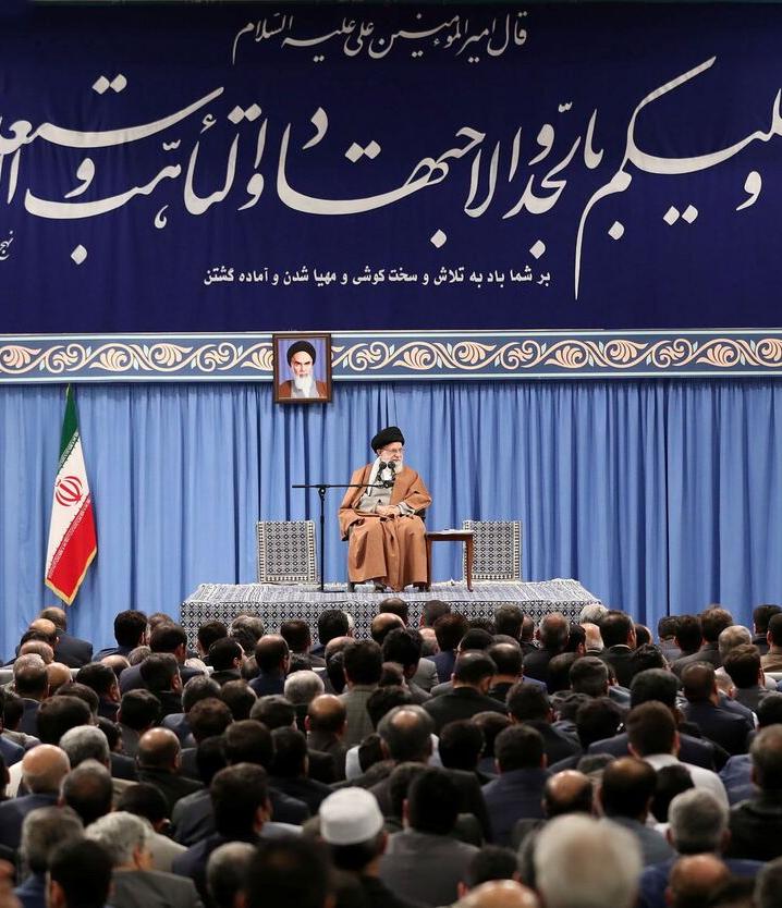 ایشان در دیداری که امسال با اعضای هیئت دولت داشتند، در قالب توصیههای مختلف دهگانه بر این موارد تأکید فرمودند؛ در همه بخشهای مدیریتی به تحوّل و تحرّک انقلابی نیاز داریم، لزوم «مردمی بودن» و «عدالتورزی»، توزیع عادلانه امکانات خصوصاً در یارانهها، مبارزه با فساد خصوصاً در اجرای نادرست سیاستهای اصل 44، اعتماد مردم بزرگترین سرمایه دولت است، مردان اقتصادی دولت باید هماهنگ عمل کنند، لزوم توجه به بخشهای پیشران اقتصاد کشور، خلق پول بانکها باید در نسبت با تولید انجام شود، پرهیز از «راهحلهای موقتی» و «موکول کردن حل مشکلات به رفع تحریم»، لزوم افزایش تحرک کشور در دیپلماسی اقتصادی و تأکید ویژه بر توسعه روابط تجاری با همسایگان.