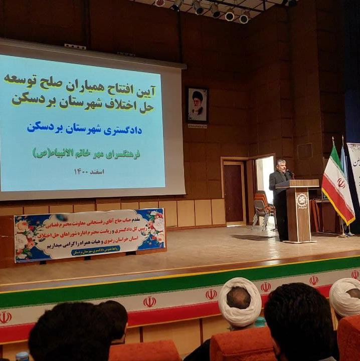 رئیس شوراهای حل اختلاف خراسان رضوی از رئیس دادگستری شهرستان بردسکن خواست برنامه ریزی شود علاوه براینکه در مرحله اول در ۴ مسجد سطح شهر بردسکن شعب همیاران صلح راه اندازی شده است در تمامی روستاهای بالای ۵۰ خانوار شهرستان نیز این شعبه تشکیل شود که دیگر پروندههای قابل گذشت به حوزه دادگستری و دادسرا ارجاع داده نشود.