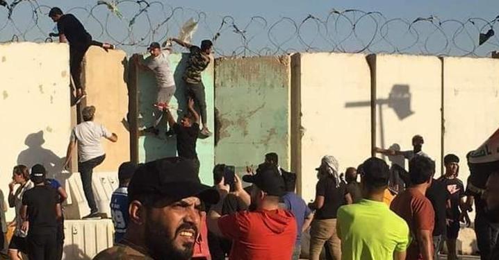 بهرغم تلاش نیروهای امنیتی عراقی برای متفرق کردن تظاهراتکنندگان، آنها دقایقی پس از تجمع در نزدیکی دروازه یادشده موانع بتنی موجود را تخریب کردند و وارد منطقه سبز بغداد شدند.