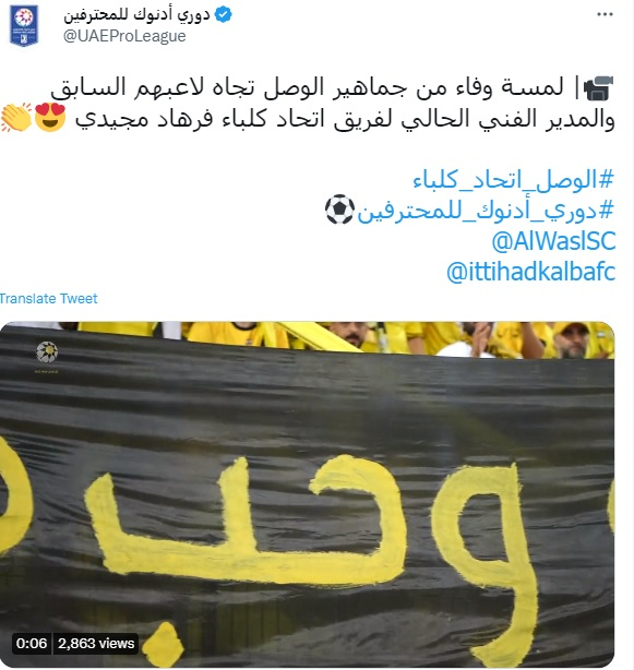 این ابراز محبت هواداران الوصل به سرمربی سابق استقلال همچنین سوژه توئیتر رسمی سازمان لیگ فوتبال امارات شد که در این زمینه نوشت: نشانه وفاداری از سوی هواداران الوصل برای فرهاد مجیدی بازیکن سابقشان و سرمربی کنونی اتحاد کلباء.