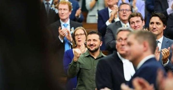 پس از معرفی کهنهسرباز اوکراینی که در جنگ جهانی دوم برای نازیها جنگیده بود، همه قانونگذاران کانادایی وی را تشویق کردند و زلنسکی مشت خود را به نشانه قدردانی از هونکا به سمت وی بلند و همراه «جاستین ترودو» نخستوزیر کانادا ایستاده او را تشویق کرد.