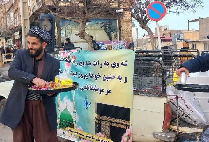 توزیع شربت و شیرینی بین مردم از برنامههای مردمی شب برات در دهگلان است.