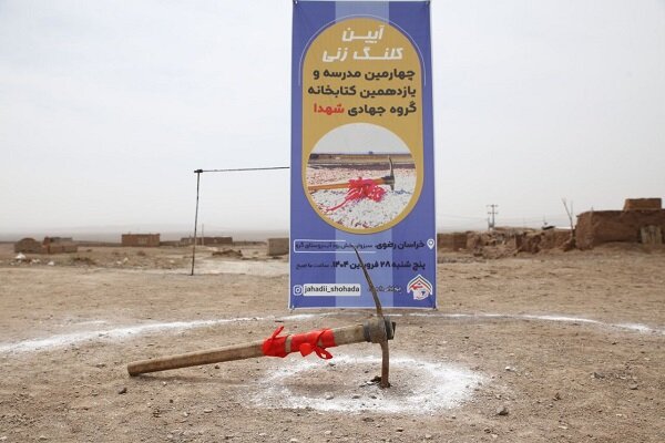 کلنگ چهارمین مدرسه و یازدهمین کتابخانه گروه جهادی شهدا به زمین خورد
