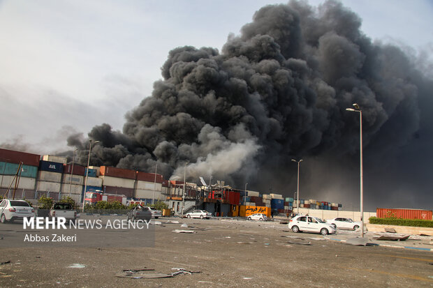 گزارش مهر از تلاشها برای اطفای حریق در بندر شهید رجایی