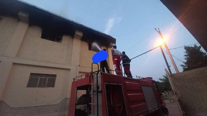 مهار آتش سوزی سالن ورزشی دهدشت با مشارکت امدادگران جمعیت هلال احمر
