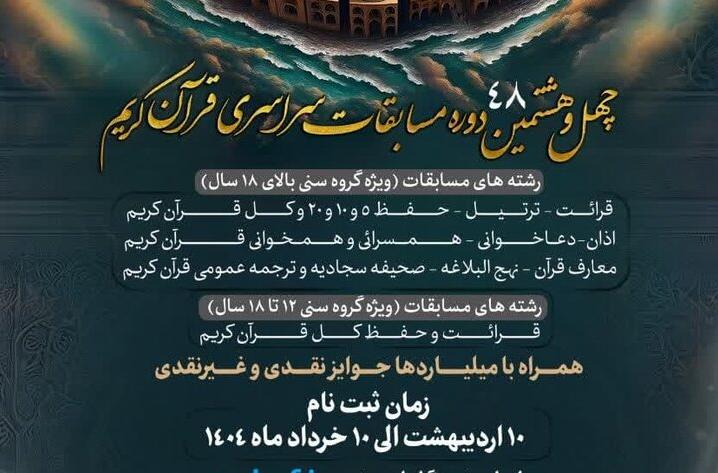 محمدی با بیان اینکه چهلوهشتمین دوره مسابقات سراسری قرآن کریم همچون دوره گذشته در دو گروه سنی ۱۲ تا ۱۸ سال و بالای ۱۸ سال برنامهریزی شده است، خاطرنشان کرد: در بخش ۱۲ تا ۱۸ سال صرفاً رشتههای قرائت تحقیق و حفظ کل قرآن در نظر گرفته شده است.