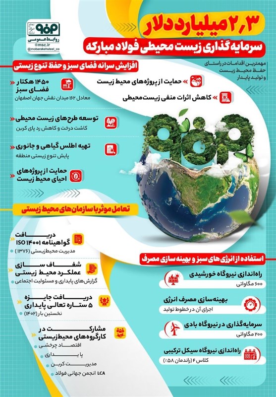 سرمایه گذاری ۲.۳ میلیارد دلاری فولاد مبارکه در محیط زیست