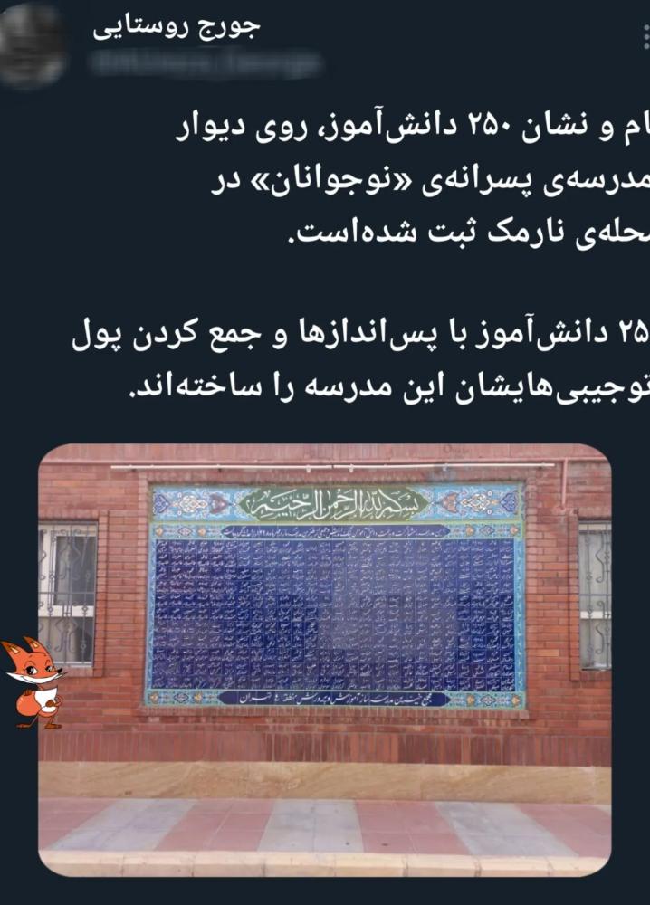 عکسی از نوشته متفاوت روی دیوار یک مدرسه پسرانه