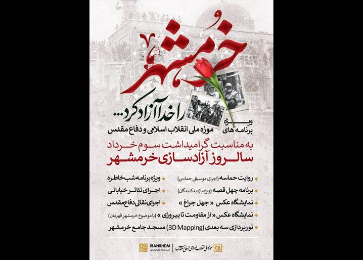 اقتصاد ایران: همزمان با فرارسیدن سوم خرداد، سالروز آزادسازی خرمشهر و چهارم خرداد، روز مقاومت مردم دزفول، موزه ملی انقلاب اسلامی و دفاع مقدس میزبان مجموعهای از برنامههای فرهنگی، هنری و آیینی خواهد بود.